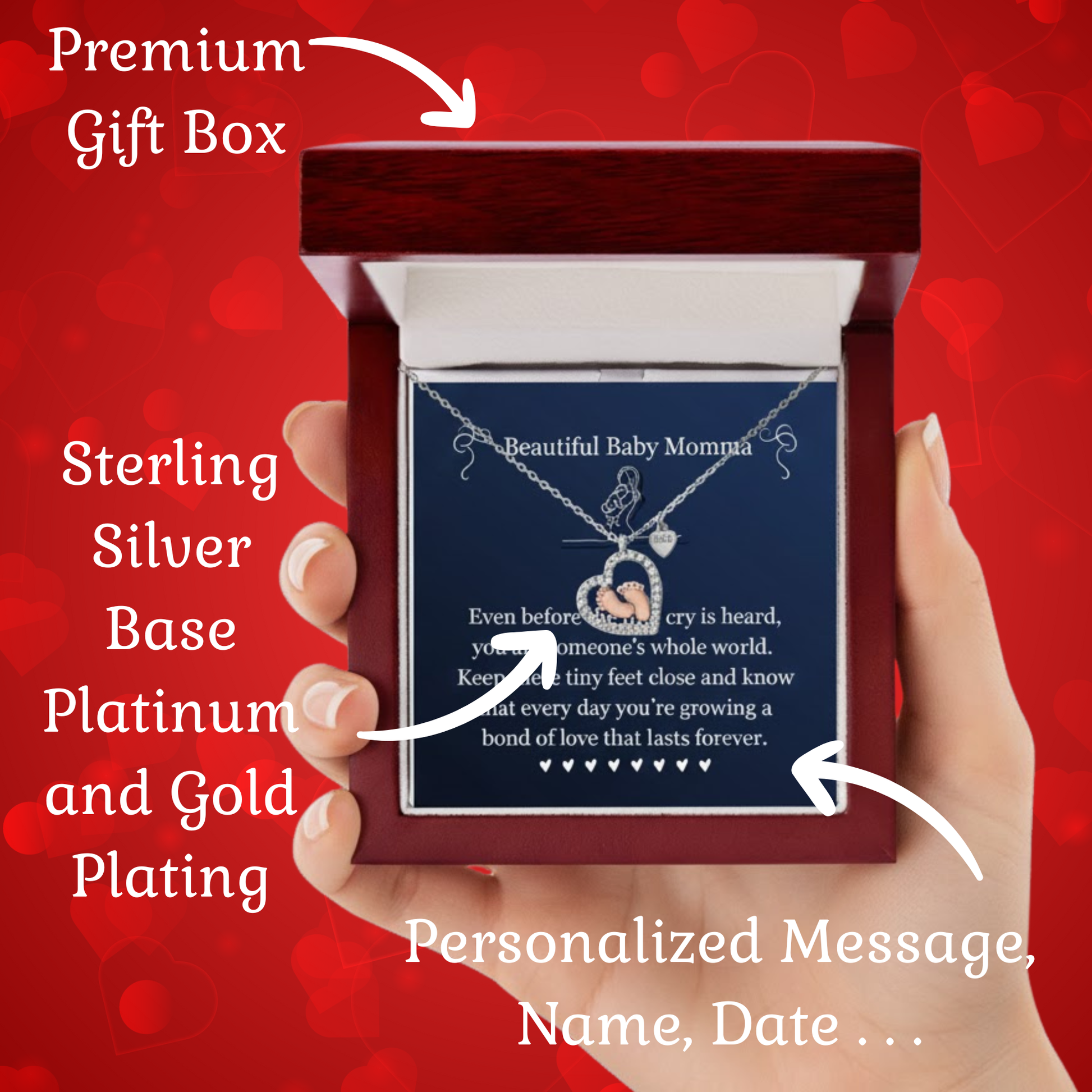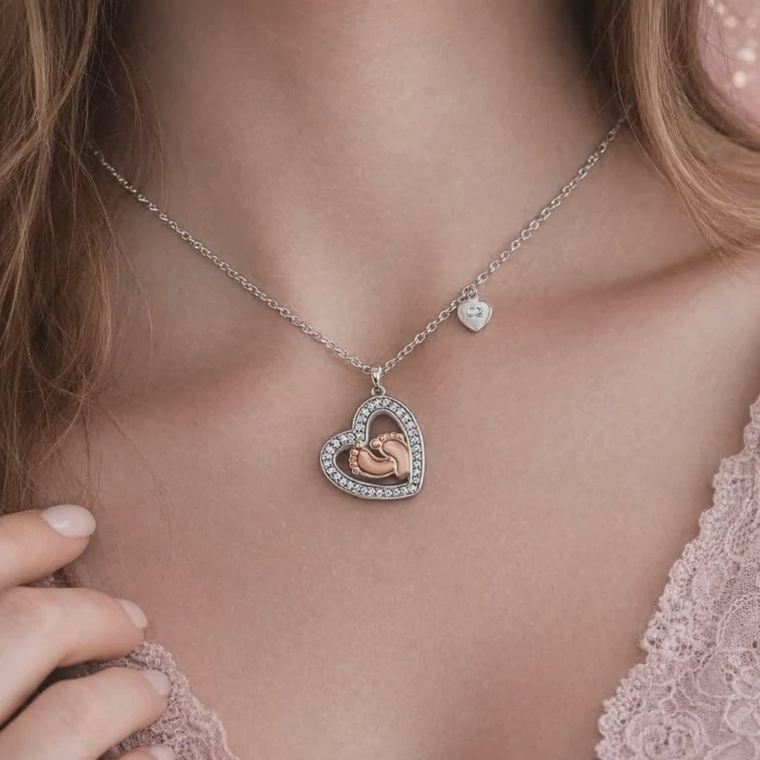 Beautiful Baby Momma Baby Feet Heart Necklace